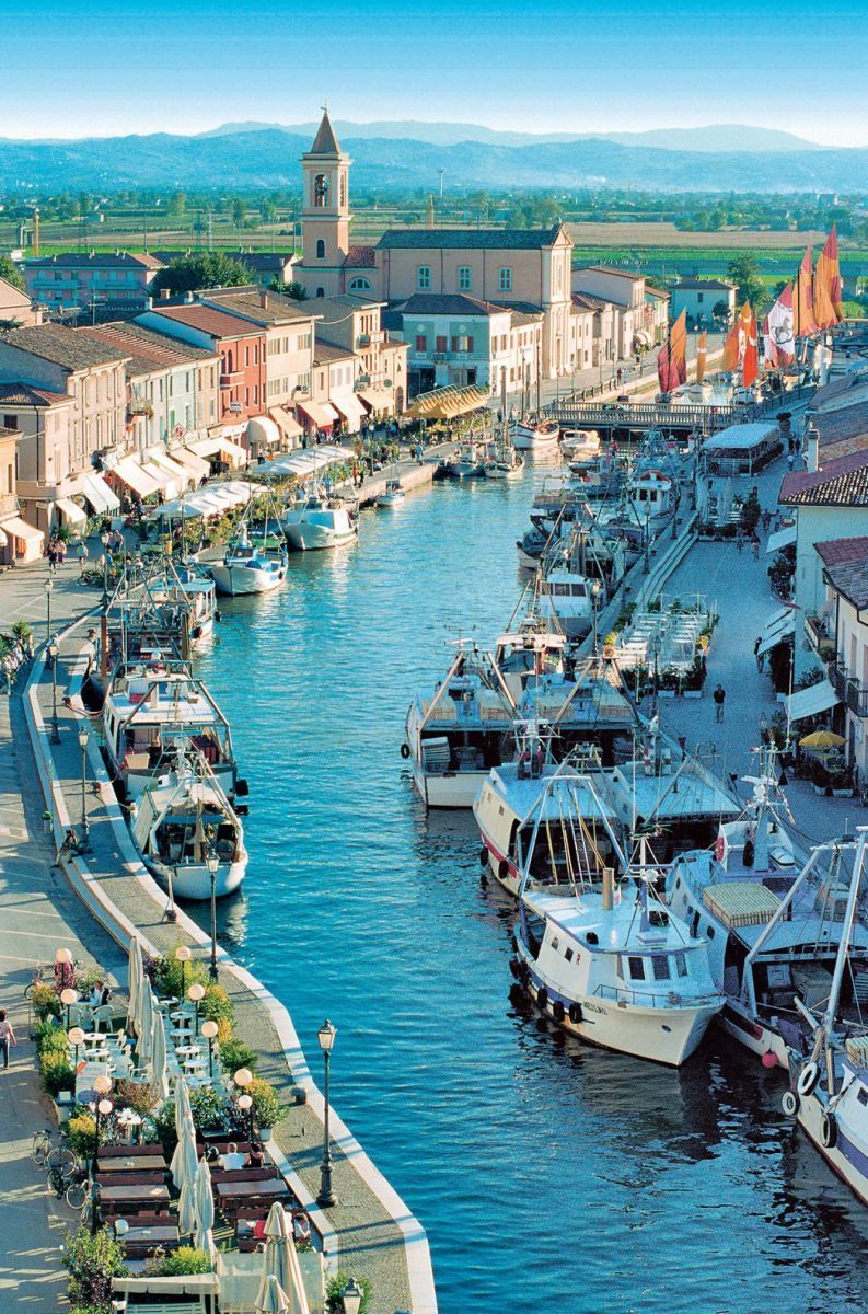 Cesenatico a gardé son caractère de village de pêcheurs au coeur de la côte adriatique. En témoignent le pittoresque chenal avec ses voiles colorées et le “musée de la marine flottant” qui traverse toute la ville. Le chenal fut dessiné en 1502 par Léonard de Vinci et attire aujourd’hui de nombreux visiteurs du monde entier.